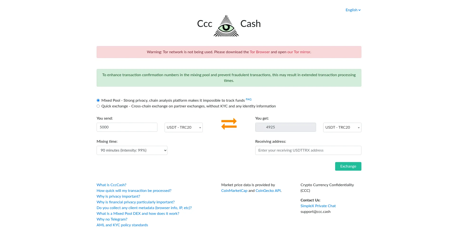 Discover CCC CASH, a decentralized DEX platform offering coin mixing and non-custodial cross-chain exchange services. No KYC verification required, ensuring your transaction pri...