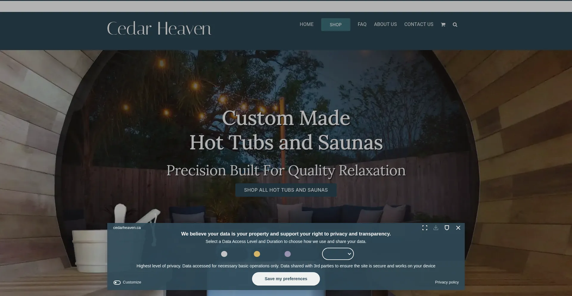 Analysis indicates that cedarheaven.ca operates as an e-commerce platform facilitating online transactions for goods or services. The website implements shopping cart functionality, payment processing systems, and product catalog features typical of commercial retail operations.