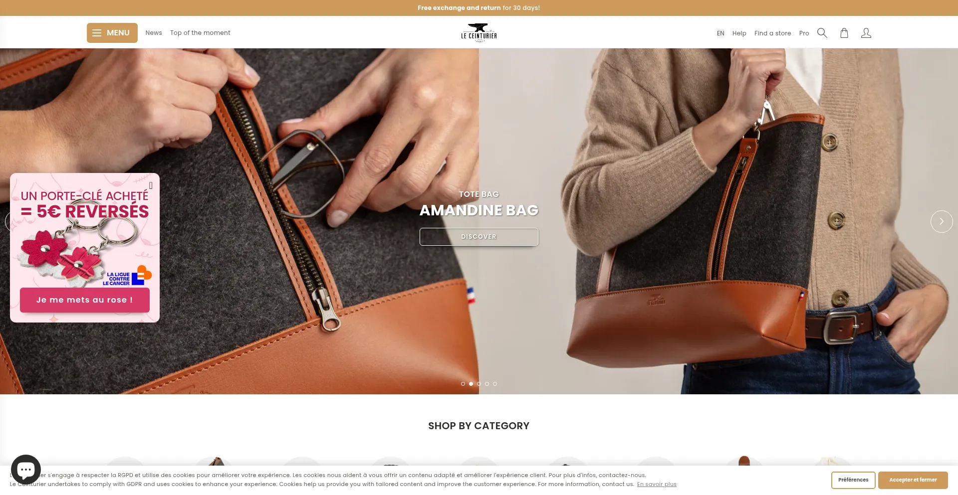 Analysis indicates that ceinturier.com operates as an e-commerce platform facilitating online transactions for goods or services. The website implements shopping cart functionality, payment processing systems, and product catalog features typical of commercial retail operations.