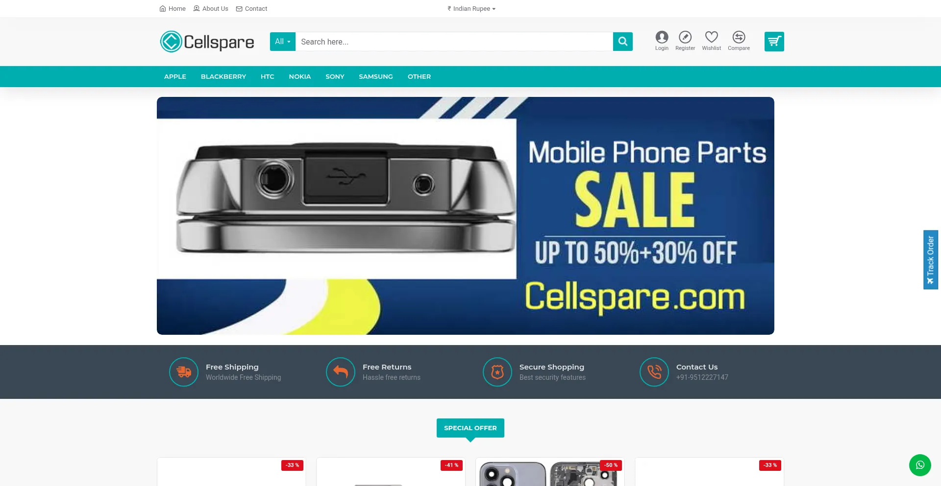 The website leverages popular product names and brands to attract traffic and generate user interest. These products may be offered through promotional campaigns or discount strategies designed to increase visitor engagement and conversion rates for cellspare.com.