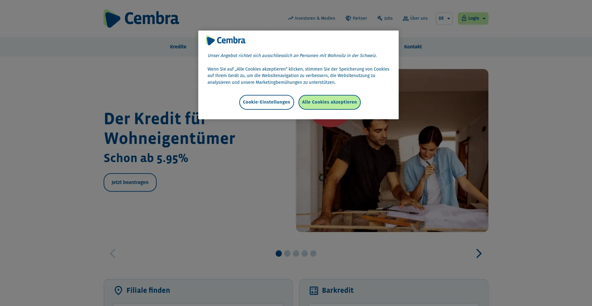 The website implements cookie consent mechanisms in compliance with privacy regulations such as GDPR or CCPA. This demonstrates that cembra.ch adheres to data protection standards and provides users with control over personal data collection practices.