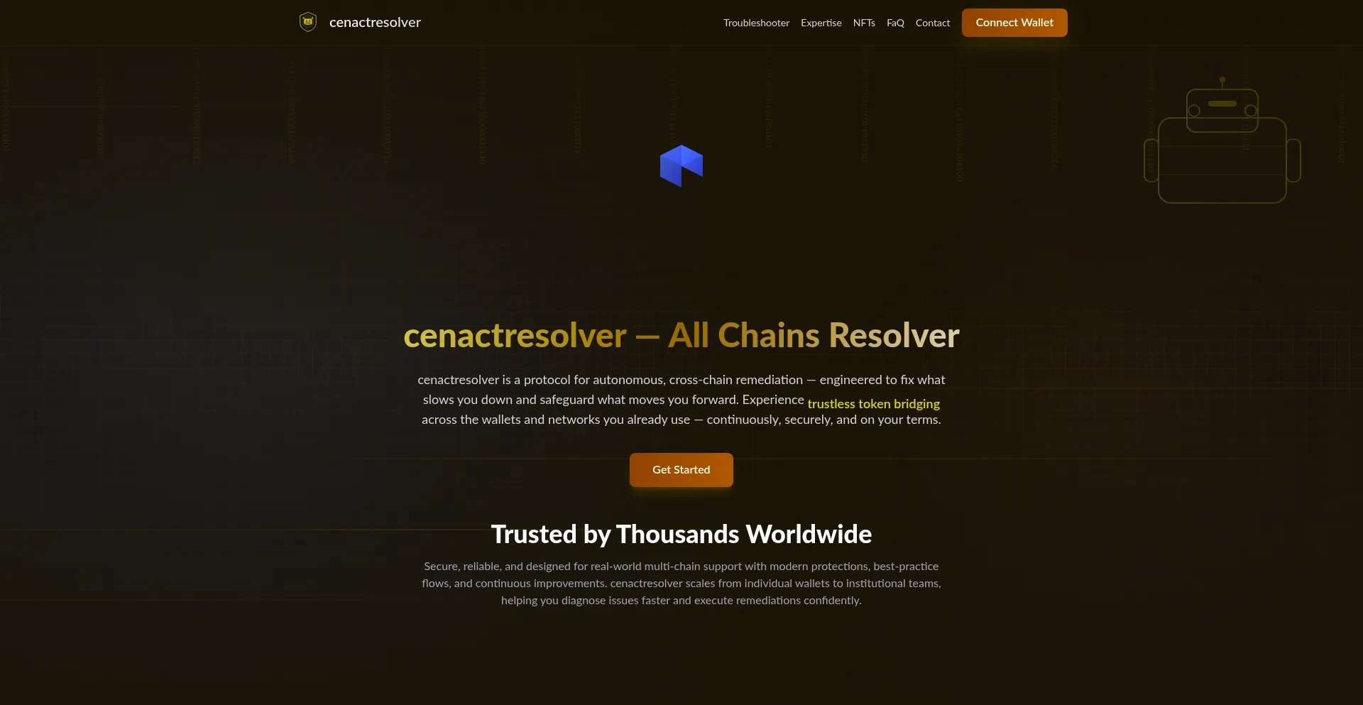 The cenactresolver.xyz website references cryptocurrency transactions or educational content related to digital assets such as Bitcoin, Ethereum, or other blockchain-based currencies. Users should exercise caution as cryptocurrency transactions are irreversible and the decentralized nature of these assets provides limited recourse for fraudulent activities.