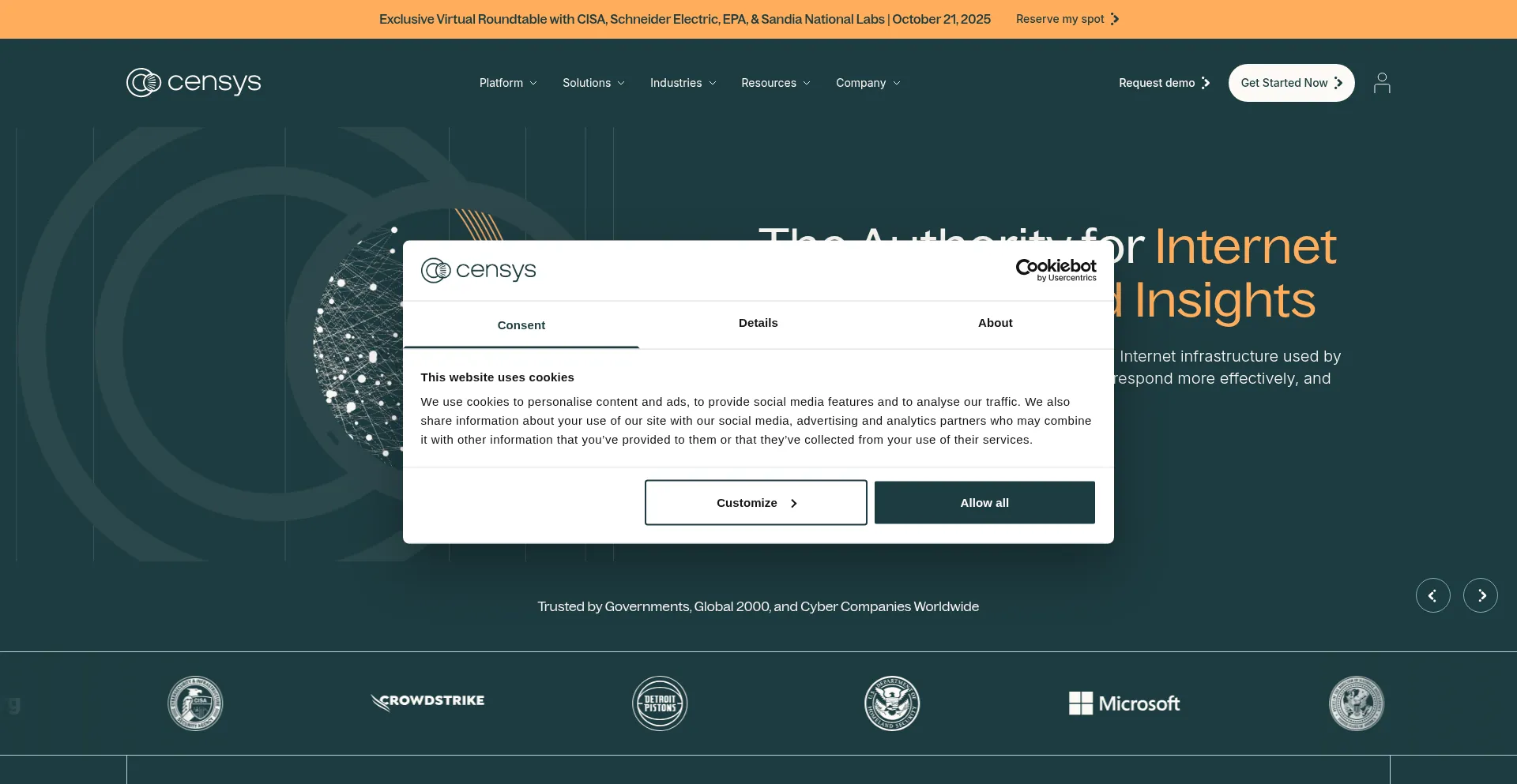The website implements cookie consent mechanisms in compliance with privacy regulations such as GDPR or CCPA. This demonstrates that censys.io adheres to data protection standards and provides users with control over personal data collection practices.