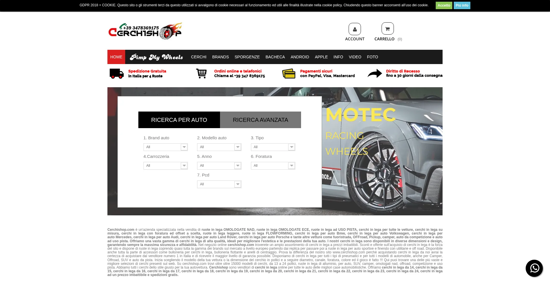 Cerchi in lega per auto. Vendita online di cerchioni in lega, ruote in lega, cerchi in lega replica, cerchioni per auto. Shop online con sconti e offerte. Spedizione gratuita