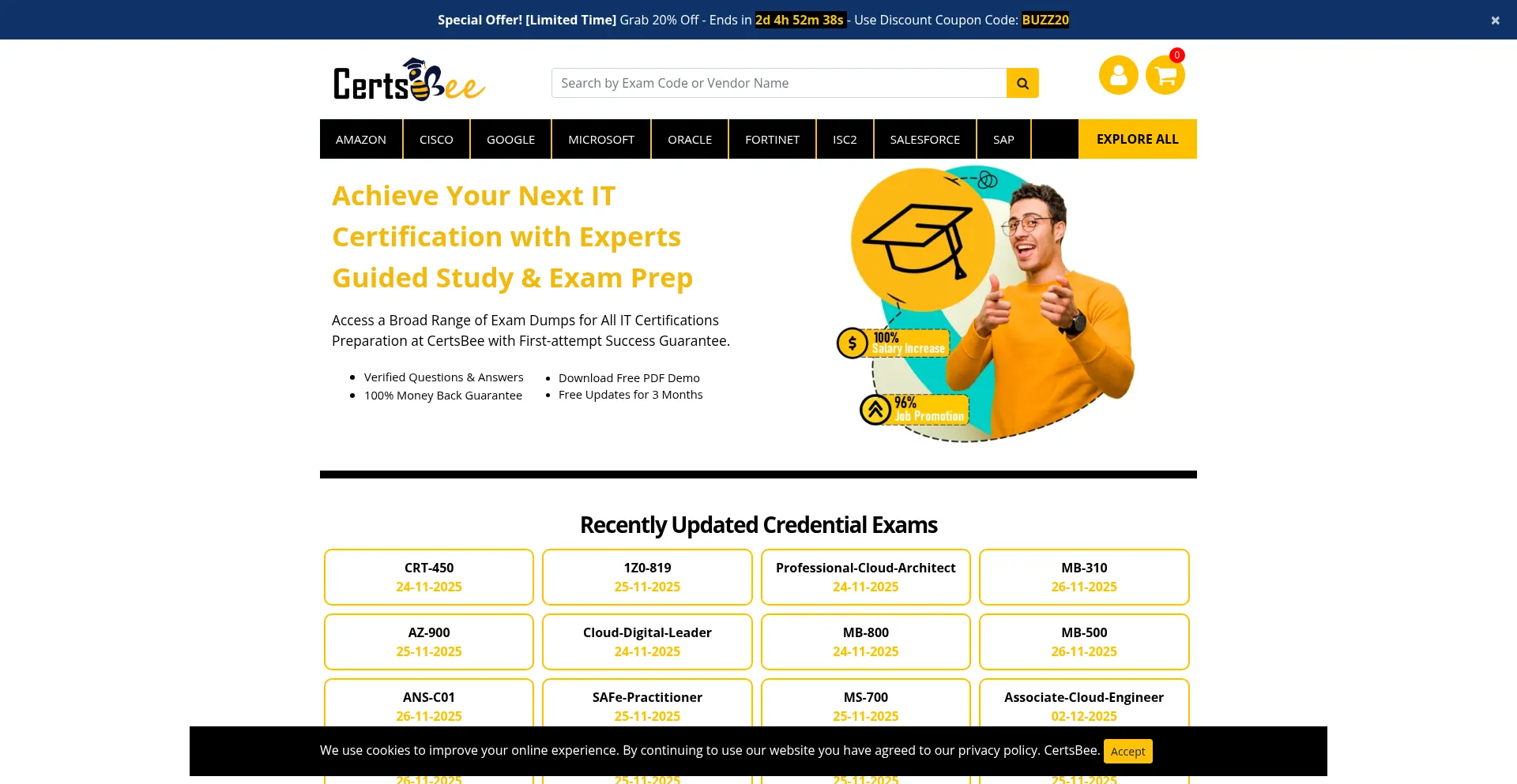 Access expert-approved exam dumps, practice test, and pdf questions at CertsBee. Enjoy free updates, refund promise with first-attempt success guarantee.
