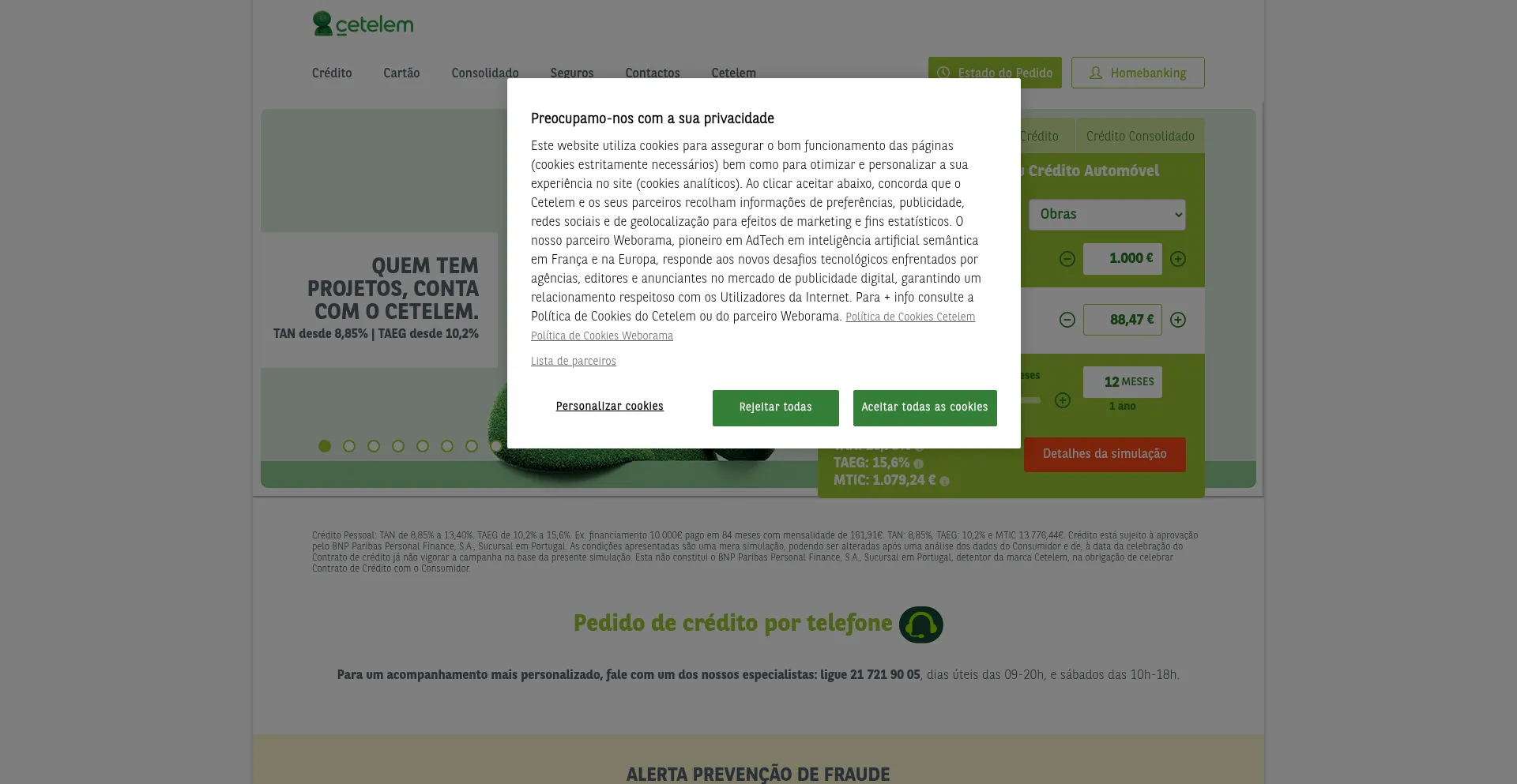 The website implements cookie consent mechanisms in compliance with privacy regulations such as GDPR or CCPA. This demonstrates that cetelem.pt adheres to data protection standards and provides users with control over personal data collection practices.