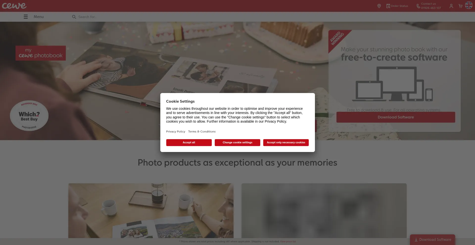 The website implements cookie consent mechanisms in compliance with privacy regulations such as GDPR or CCPA. This demonstrates that cewe.co.uk adheres to data protection standards and provides users with control over personal data collection practices.