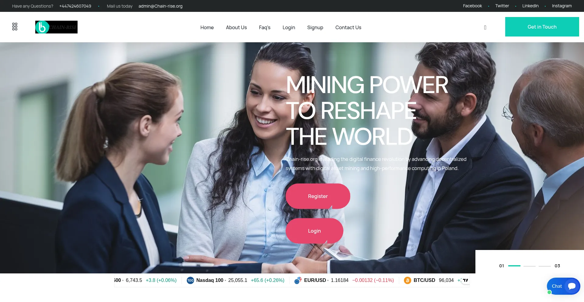 The chain-rise.org probably offers cloud mining services or cryptocurrency mining investments. Some platforms provide legitimate mining rental services, while others may use fake mining dashboards to display virtual earnings that cannot be withdrawn.