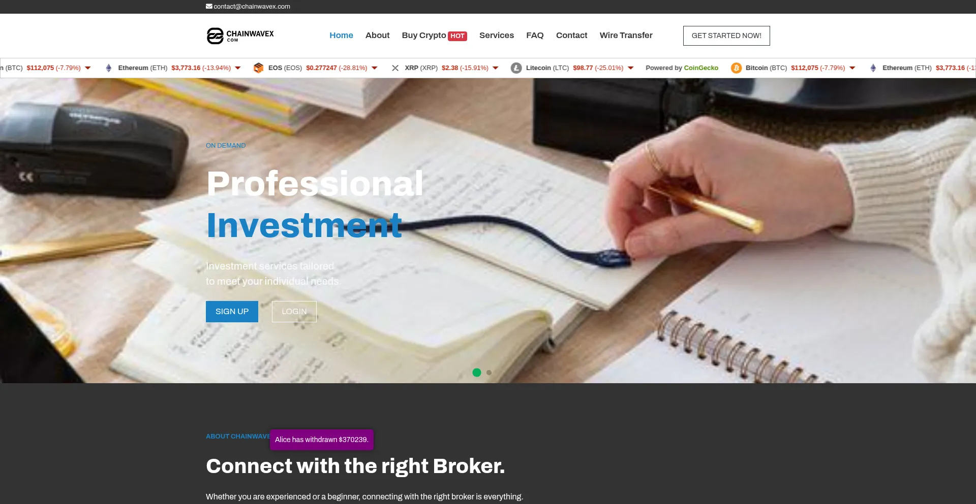 Chainwavex LIMITED??? INVEST IN A LEADING TRADE AND INVESTMENT COMPANY, OPERATING IN THE UK. SERVICES INCLUDE: FOREX TRADING CRYPTOCURRENCIES, STOCKS & COMMODITIES INVESTMENTS....