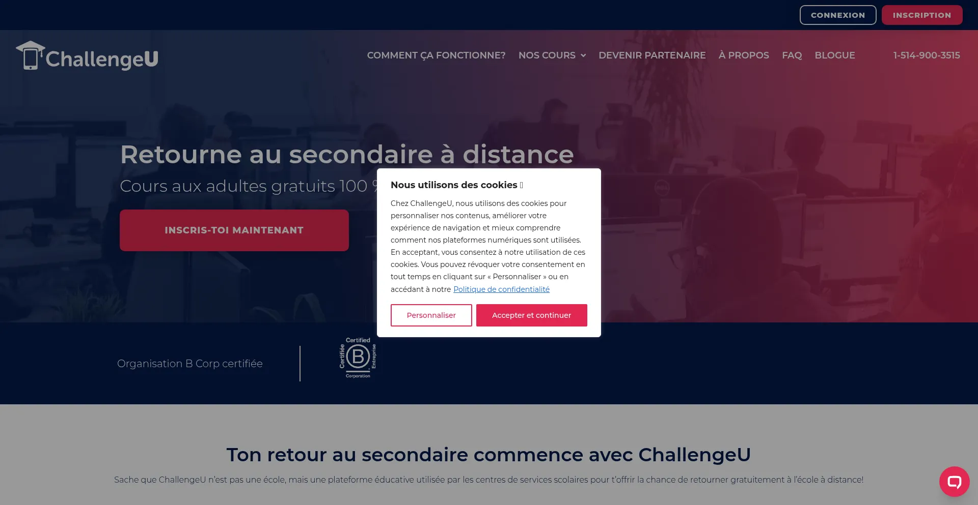 Découvre ChallengeU, une plateforme interactive en ligne où tu peux faire des cours du secondaire au secteur adulte. C'est gratuit et 100% à distance!