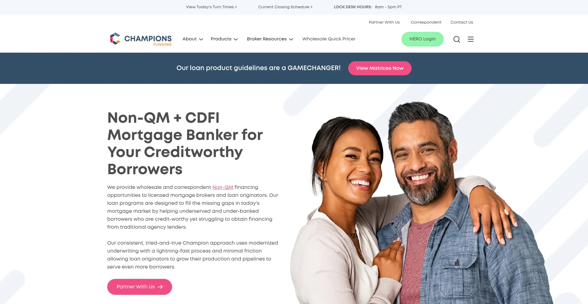 Champions Funding is your 100% Non-QM lender offering a full product suite for consumers & investor borrowers.