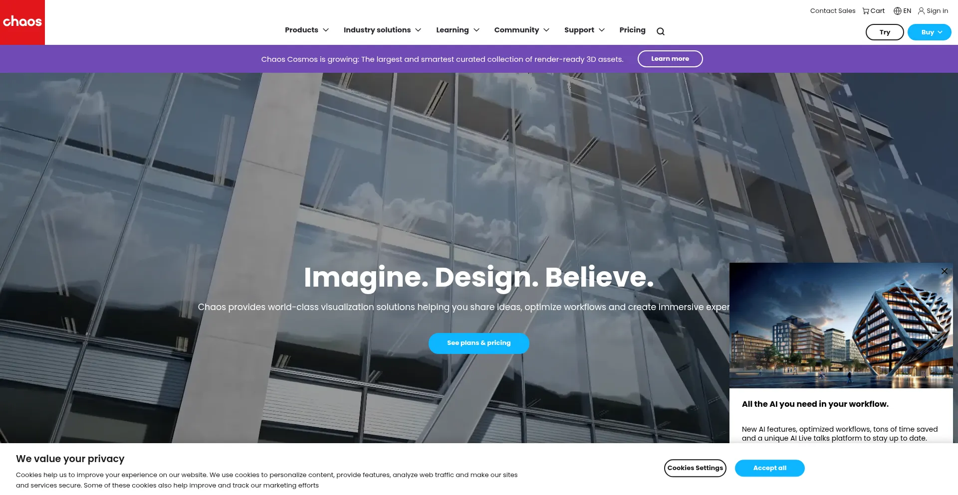 Chaos develops visualization technologies that empower artists & designers to create photorealistic imagery and animation across all creative industries