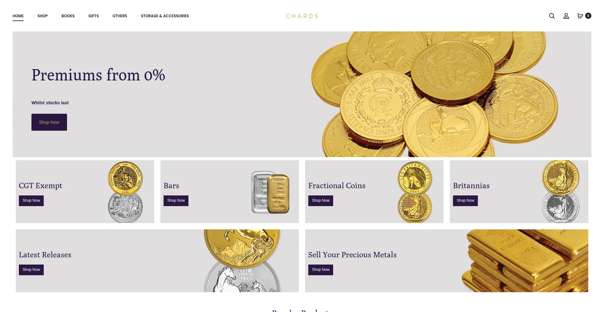 Premiums from 0% Whilst stocks last Shop Now Premiums from 0% Whilst stocks last Shop Now CGT Exempt Shop Now Bars Shop Now Fractional Coins Shop Now
