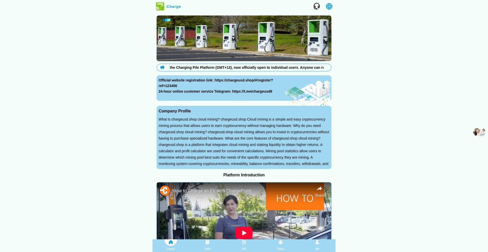 The chargeusd.shop probably offers cloud mining services or cryptocurrency mining investments. Some platforms provide legitimate mining rental services, while others may use fake mining dashboards to display virtual earnings that cannot be withdrawn.