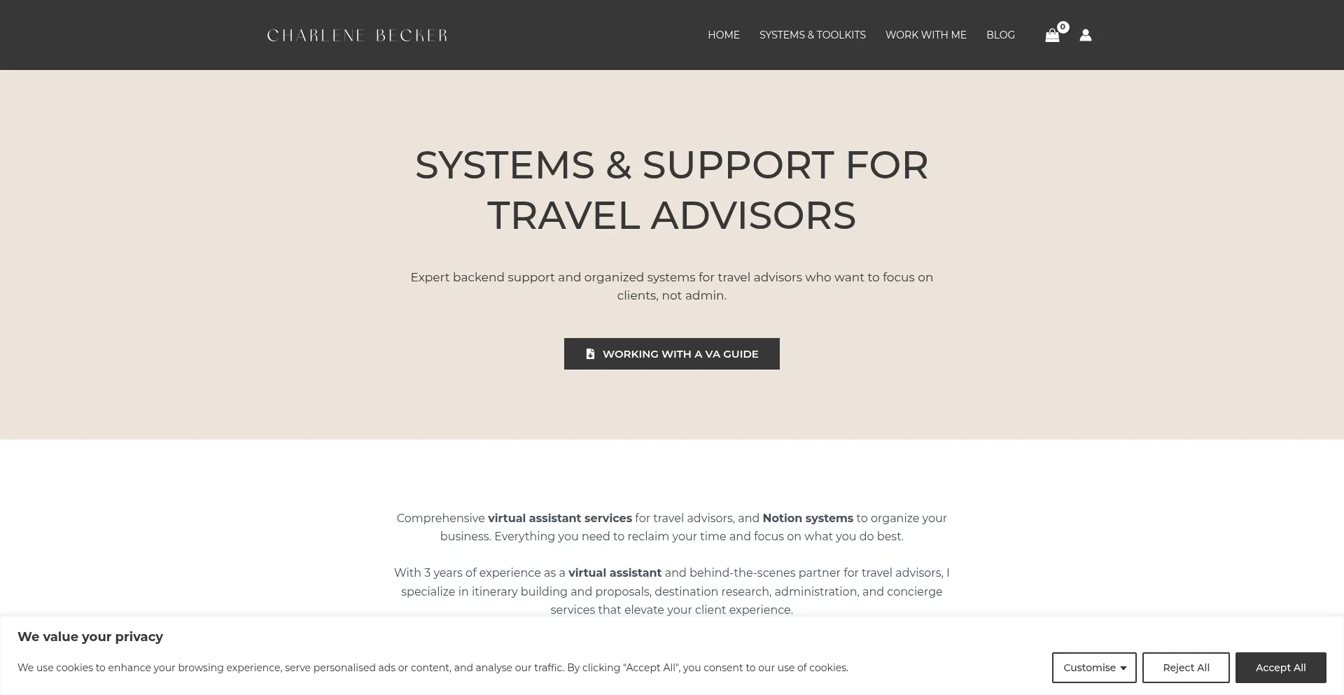 Comprehensive virtual assistant services for travel advisors, and Notion systems to organize your business.