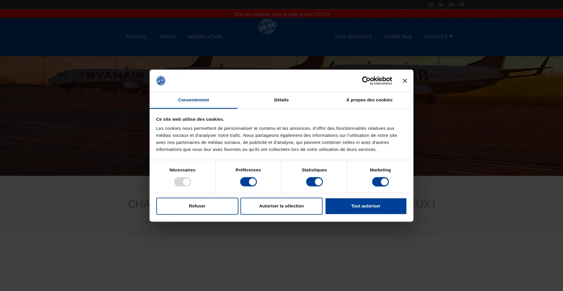 The website implements cookie consent mechanisms in compliance with privacy regulations such as GDPR or CCPA. This demonstrates that charleroilowcost.be adheres to data protection standards and provides users with control over personal data collection practices.