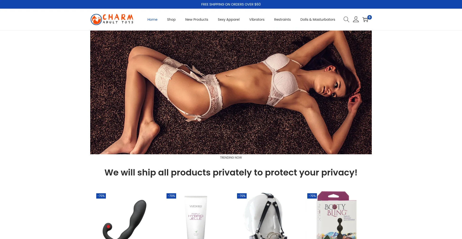Analysis indicates that charmadulttoys.com operates as an e-commerce platform facilitating online transactions for goods or services. The website implements shopping cart functionality, payment processing systems, and product catalog features typical of commercial retail operations.