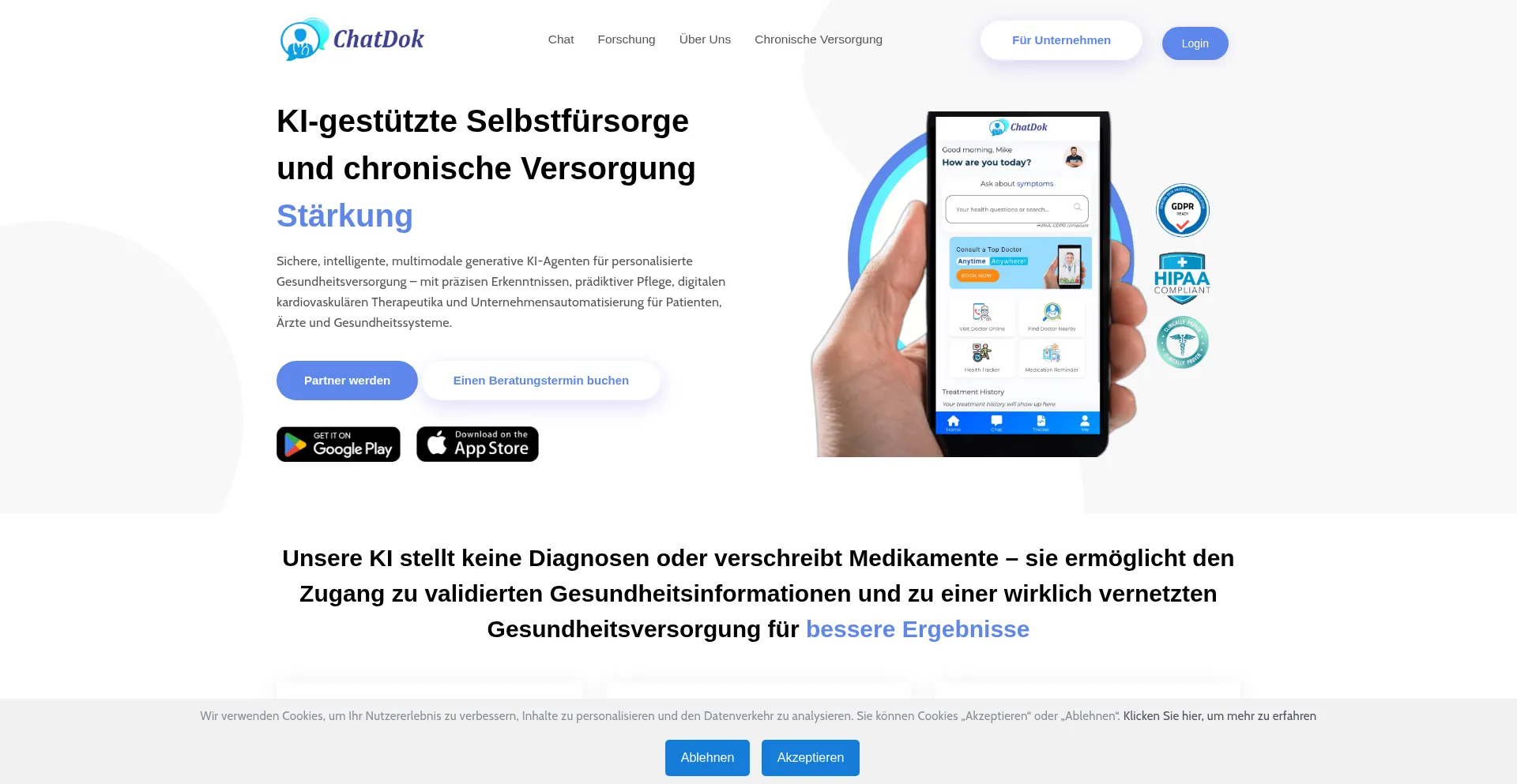 Chatdok | Medizinischer Chatbot, Gesundheitsrisiko-Vorhersage, Chronische Pflege