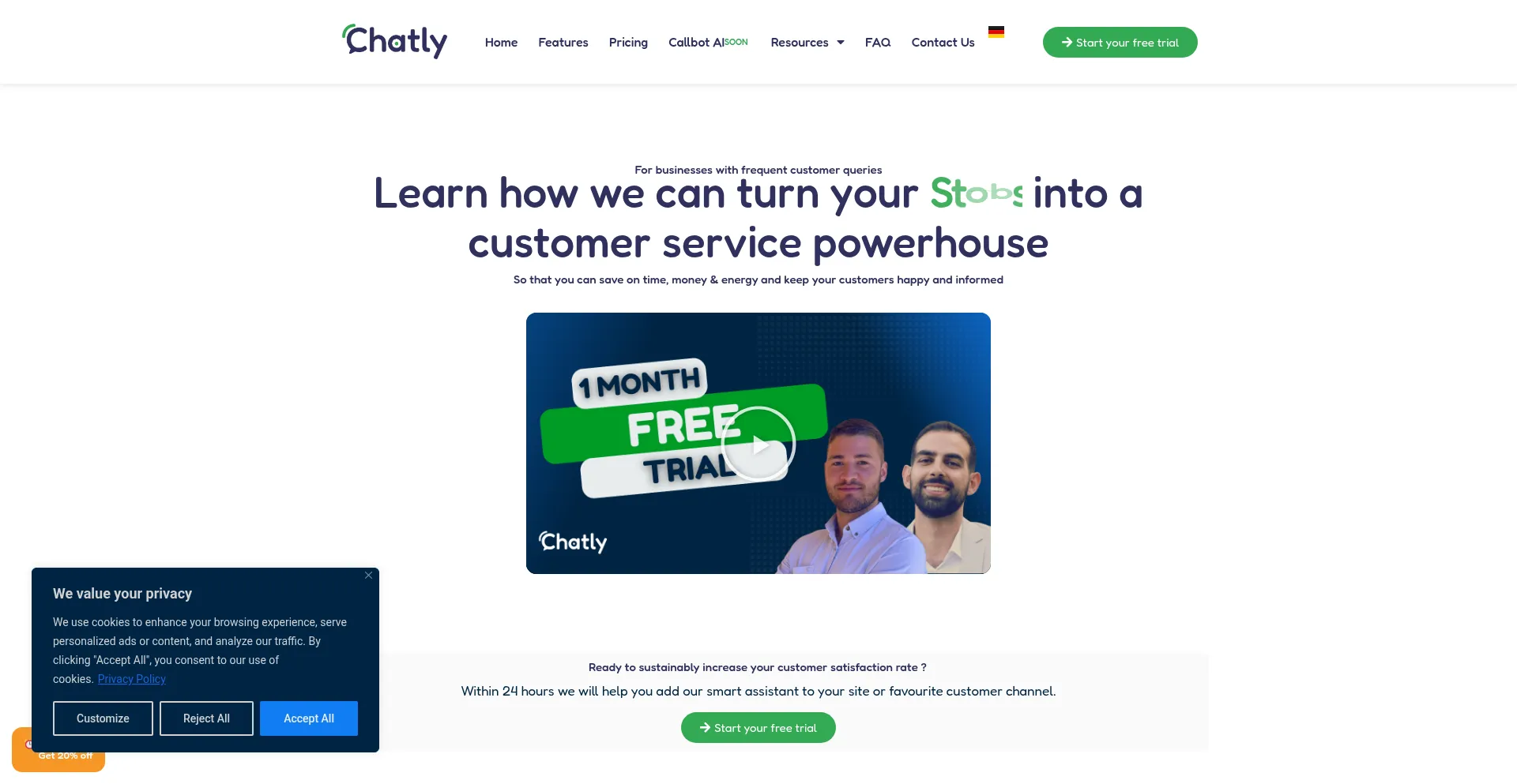 The website implements cookie consent mechanisms in compliance with privacy regulations such as GDPR or CCPA. This demonstrates that chatly.solutions adheres to data protection standards and provides users with control over personal data collection practices.