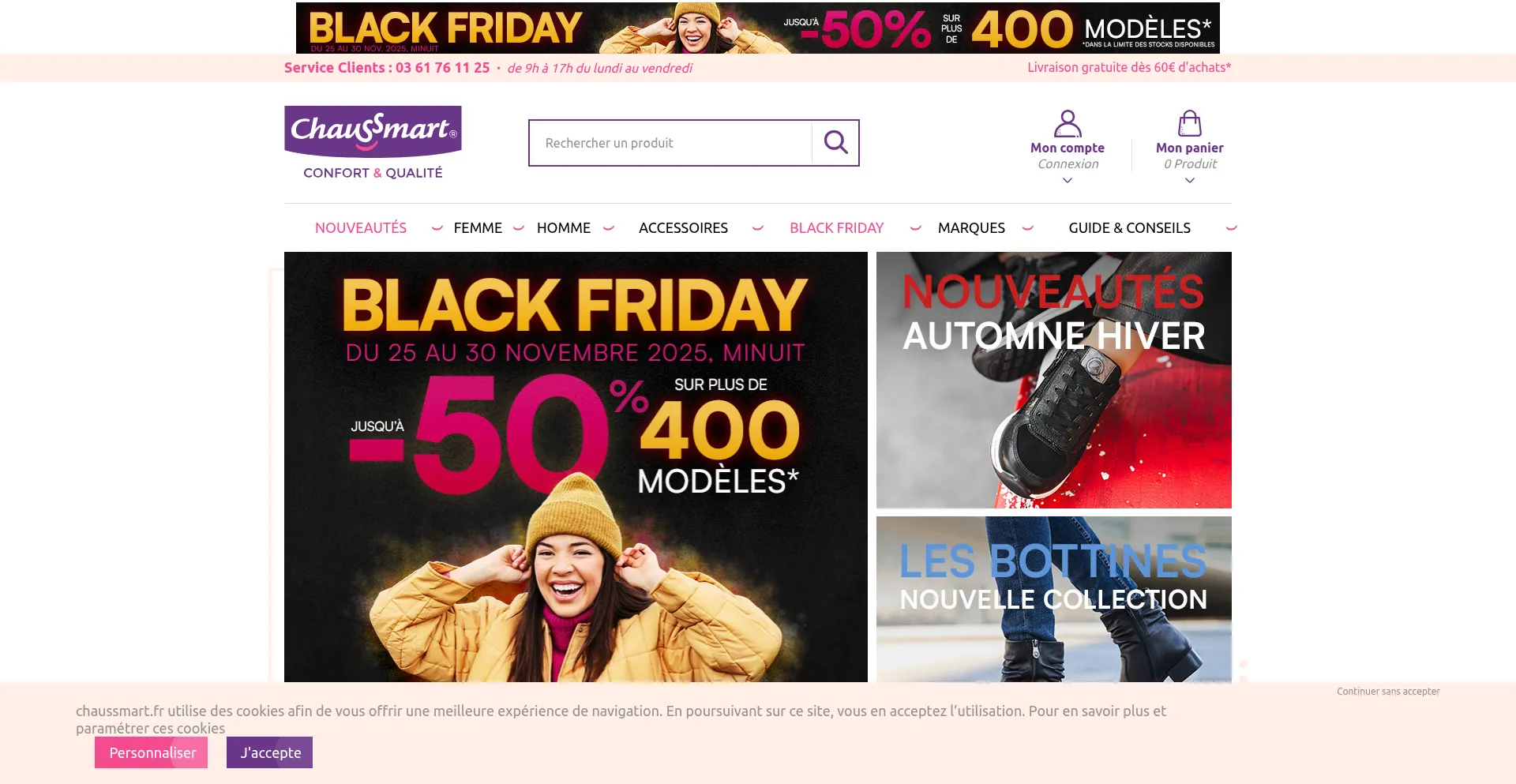The chaussmart.com website uses Google Tag Manager to add and update tracking tags on its website.