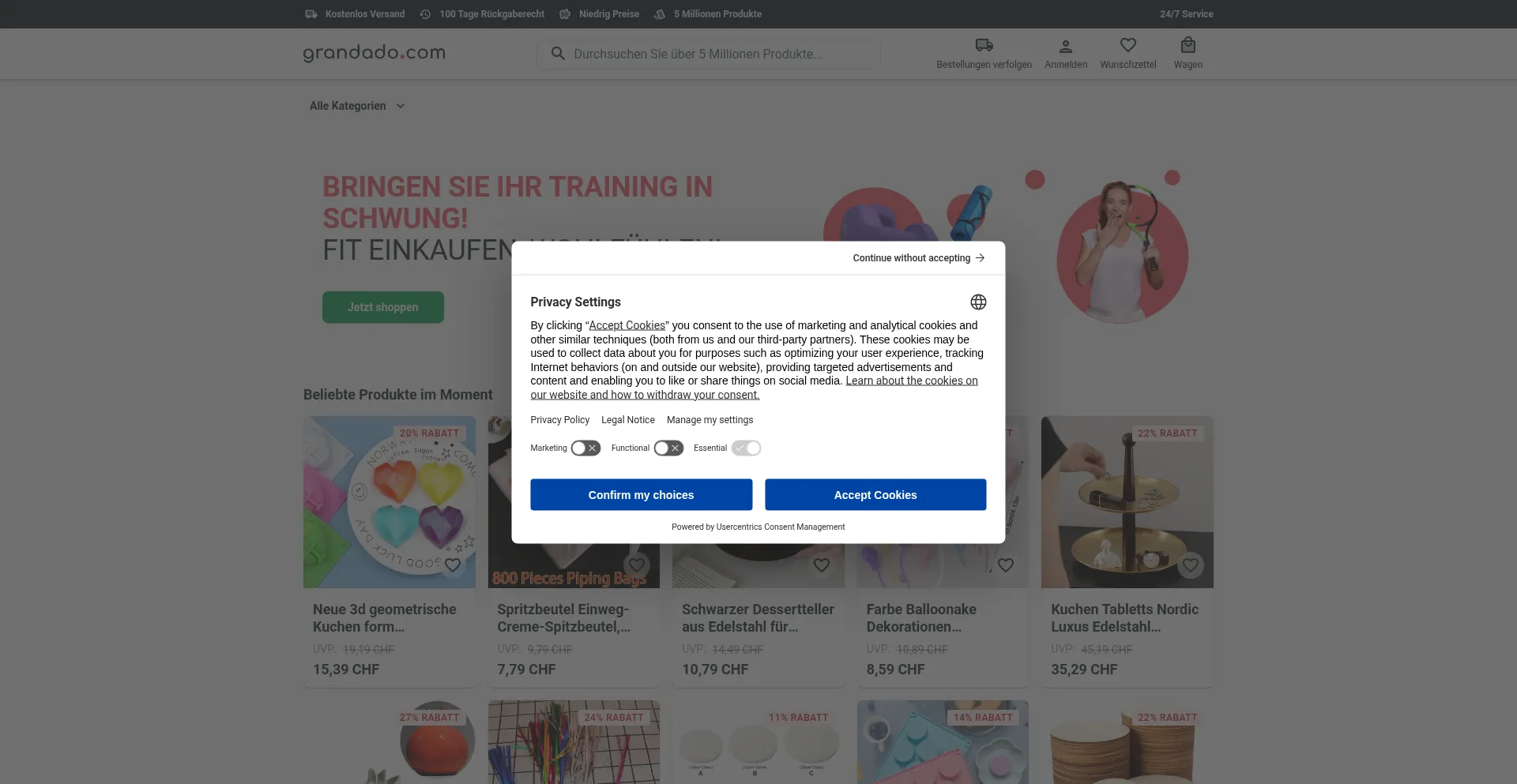 storefront-api.nexusapp.co assets.nexusapp.co fonts.gstatic.com che.grandado.com www.google-analytics.com uct.service.usercentrics.eu v1.api.service.cmp.usercentrics.eu consent-api.service.consent.usercentrics.eu images.nexusapp.co www.googletagmanager.com +5 more