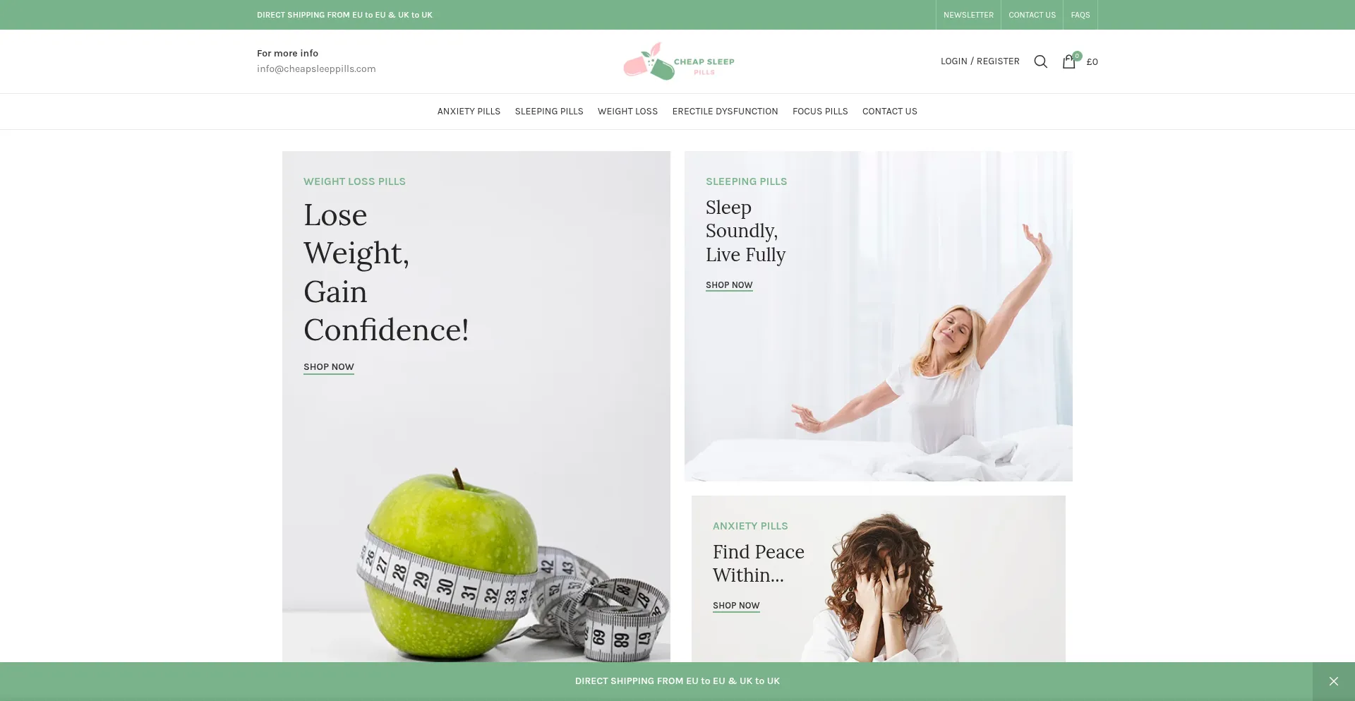 Cheap Sleep Pills is an online pharmacy offering sleeping pills, anxiety pills, weight loss pills and painkillers. Shop Now. We Deliver