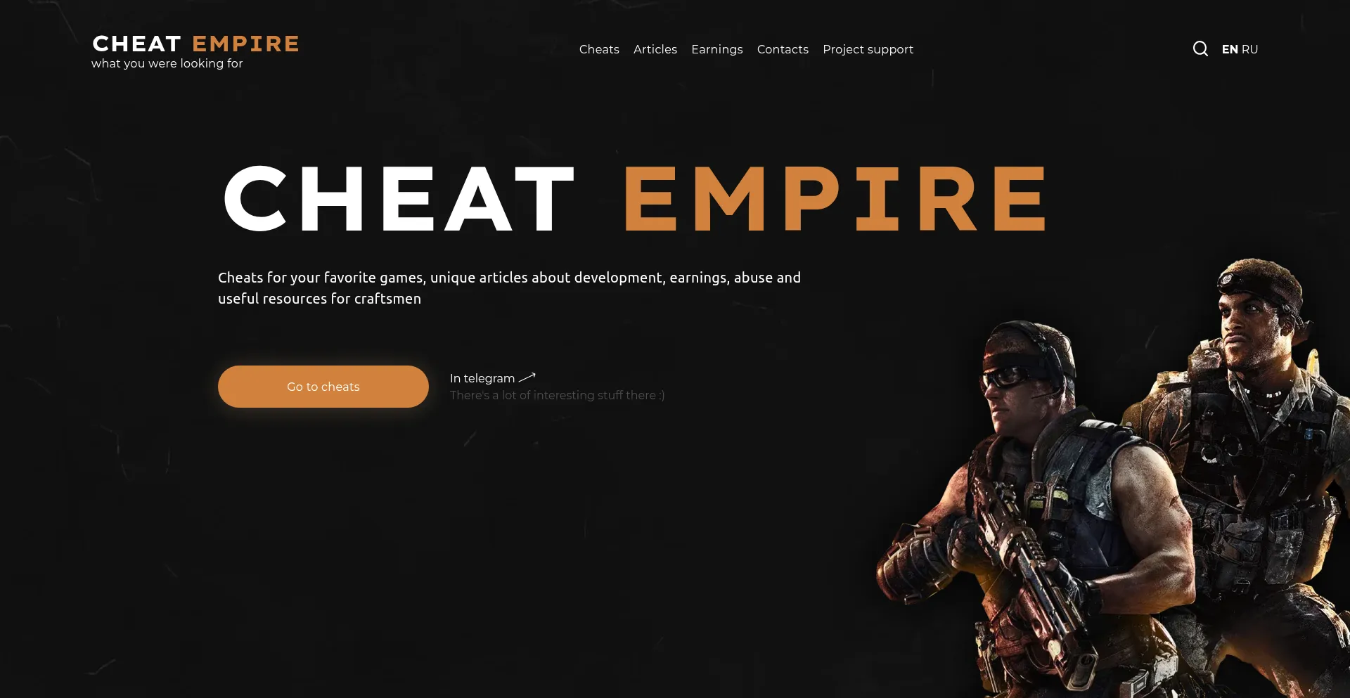Cheats for your favorite games, unique articles about development, earnings, abuse and useful resources for craftsmen