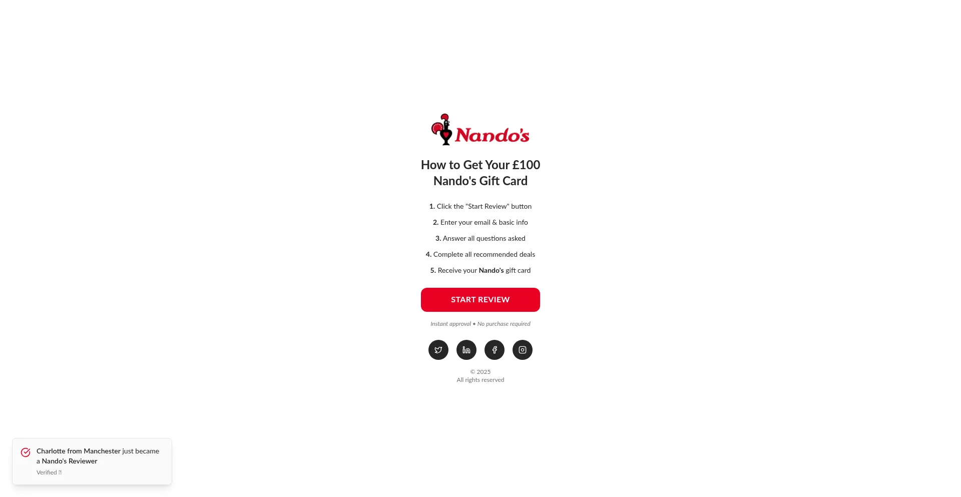 Join our exclusive Nando's feedback program and earn up to £100 for sharing your honest opinions about food and dining experiences.