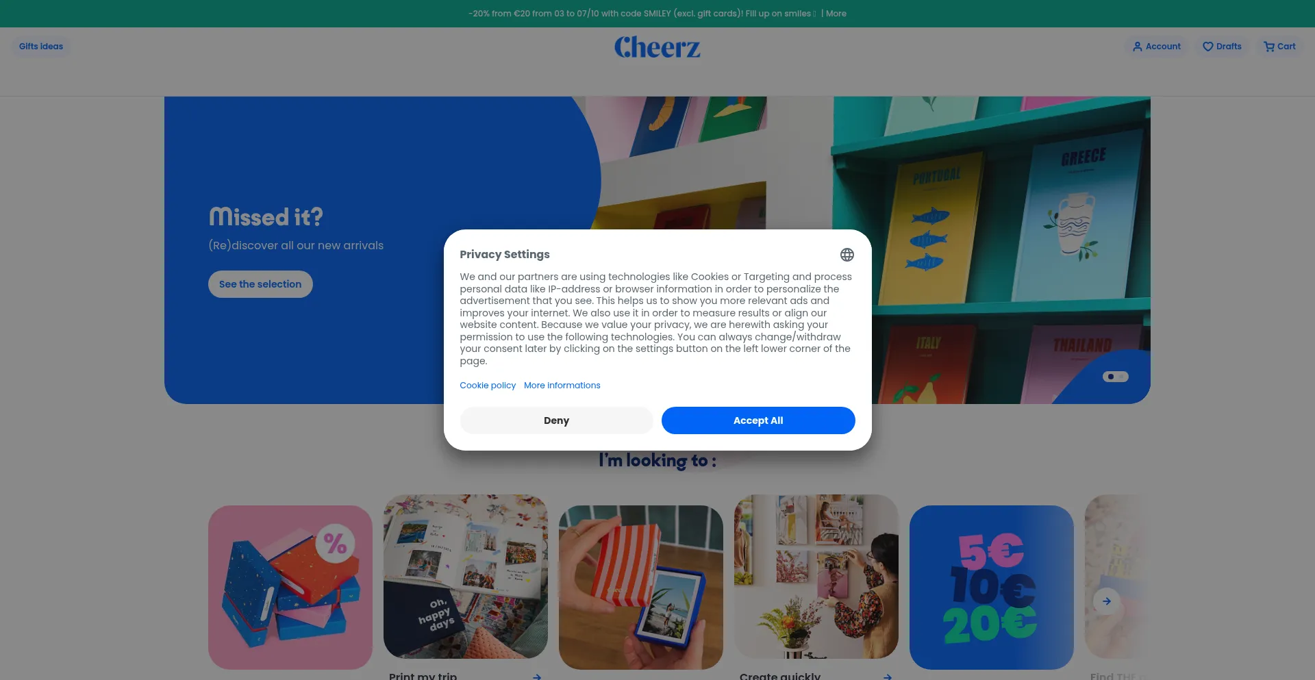The website implements cookie consent mechanisms in compliance with privacy regulations such as GDPR or CCPA. This demonstrates that cheerz.com adheres to data protection standards and provides users with control over personal data collection practices.