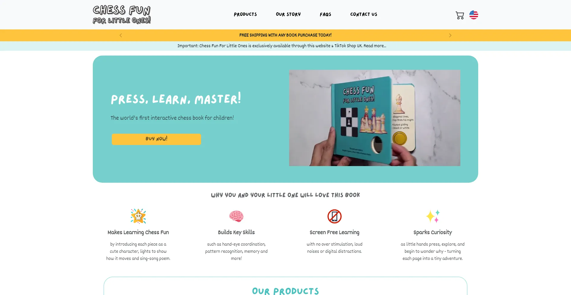 Our analyzer determines that website chessfunforlittleones.com is using Shopify CMS. Shopify is a popular e-commerce platform, powering around 4.4% of websites globally.