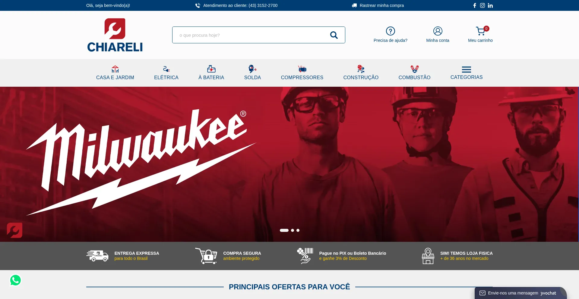 A Chiareli é uma empresa que revende máquinas e ferramentas e que abrange uma vasta necessidade do setor, desde objetos de uso cotidiano aos equipamentos mais sofisticados...