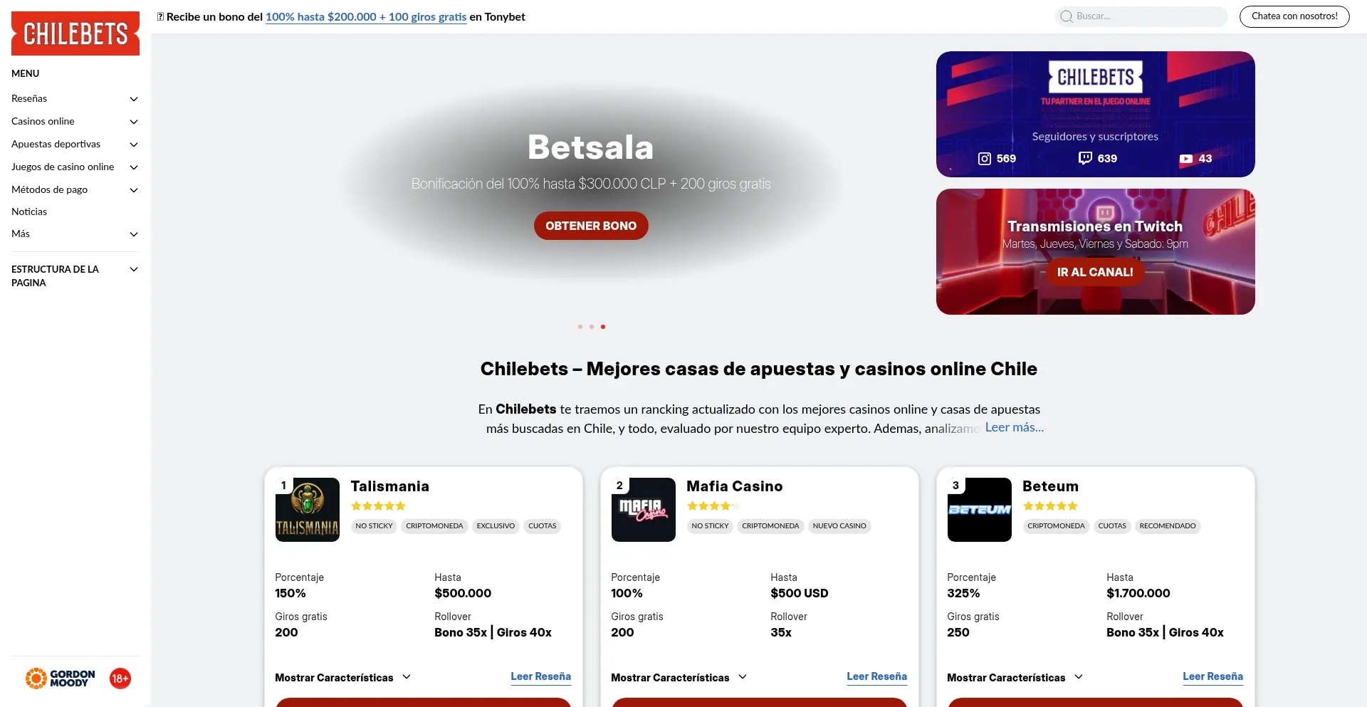 Chilebets es el sitio más destacado para encontar información sobre casinos online confiables y casas de apuestas en Chile.