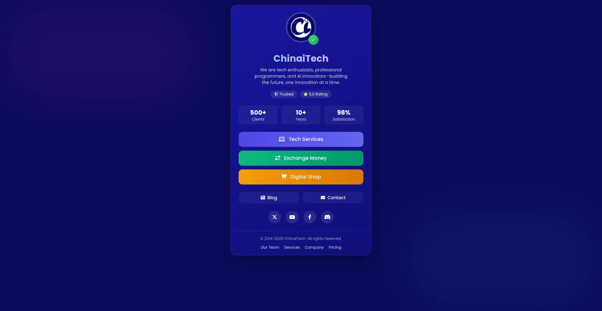 ChinaiTech: Professional tech services since 2014. Web/mobile development, secure money exchange at ChinaitechPay.com/start.php, and digital products at chinaitechpay.com/shop.p...