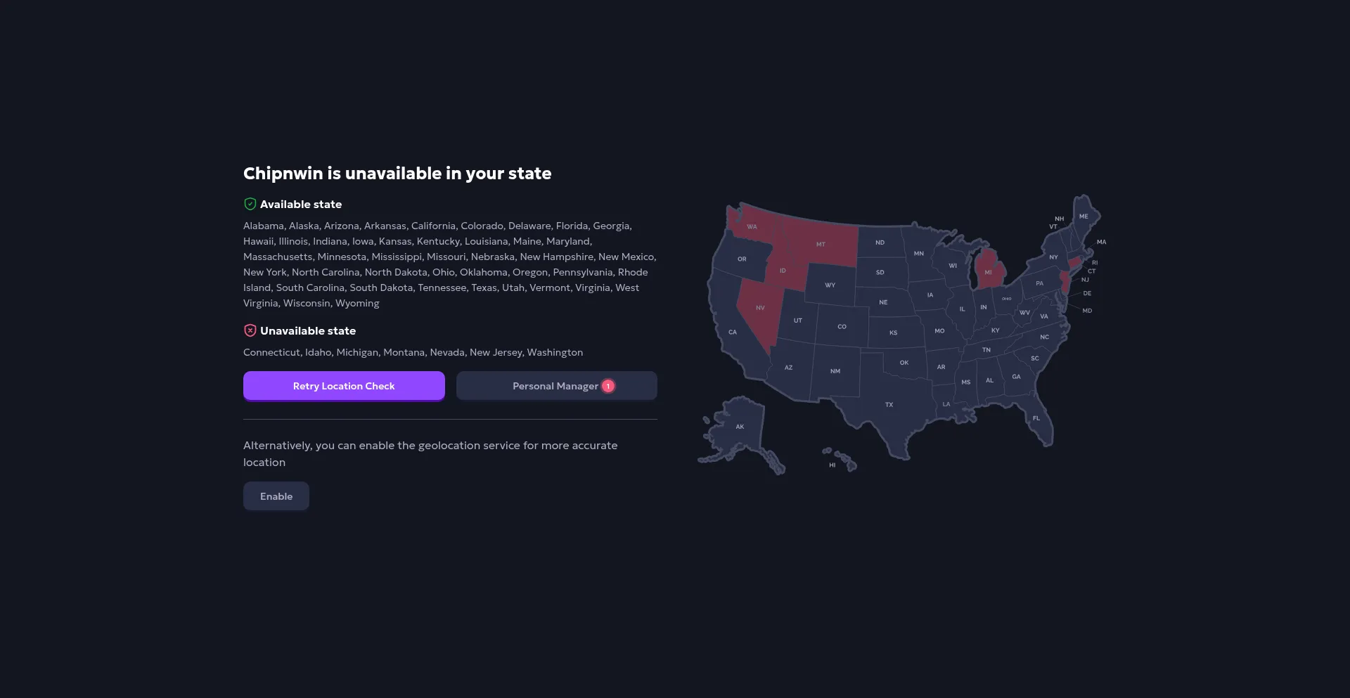 Access Restricted: Chip'n WIN is Unavailable in Your Region