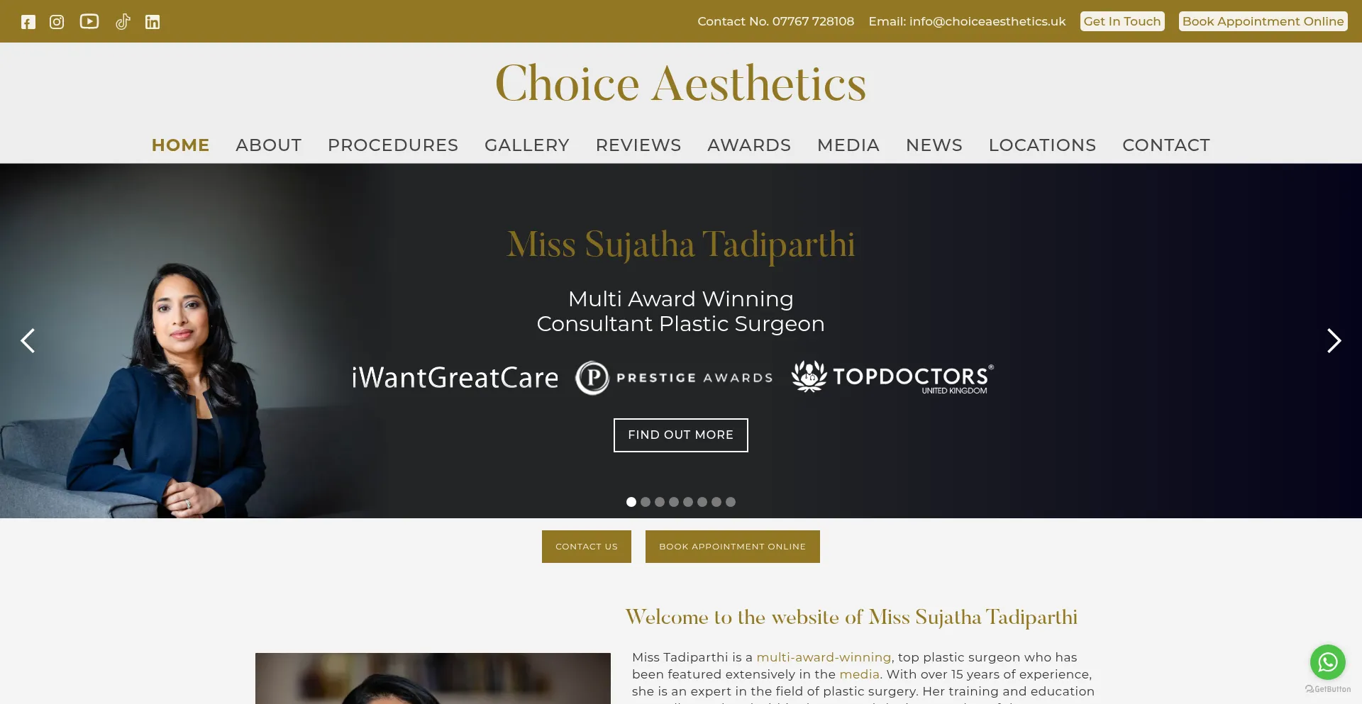 Miss Tadiparthi is a multi-award winning, highly experienced, London-based plastic surgeon, working in central London, Surrey and Kent.