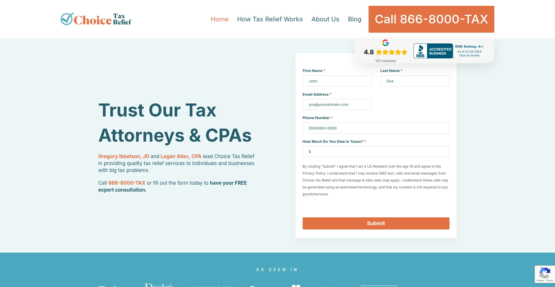 Choicetaxrelief.com Reviews | Scam, Legit or Safe Check