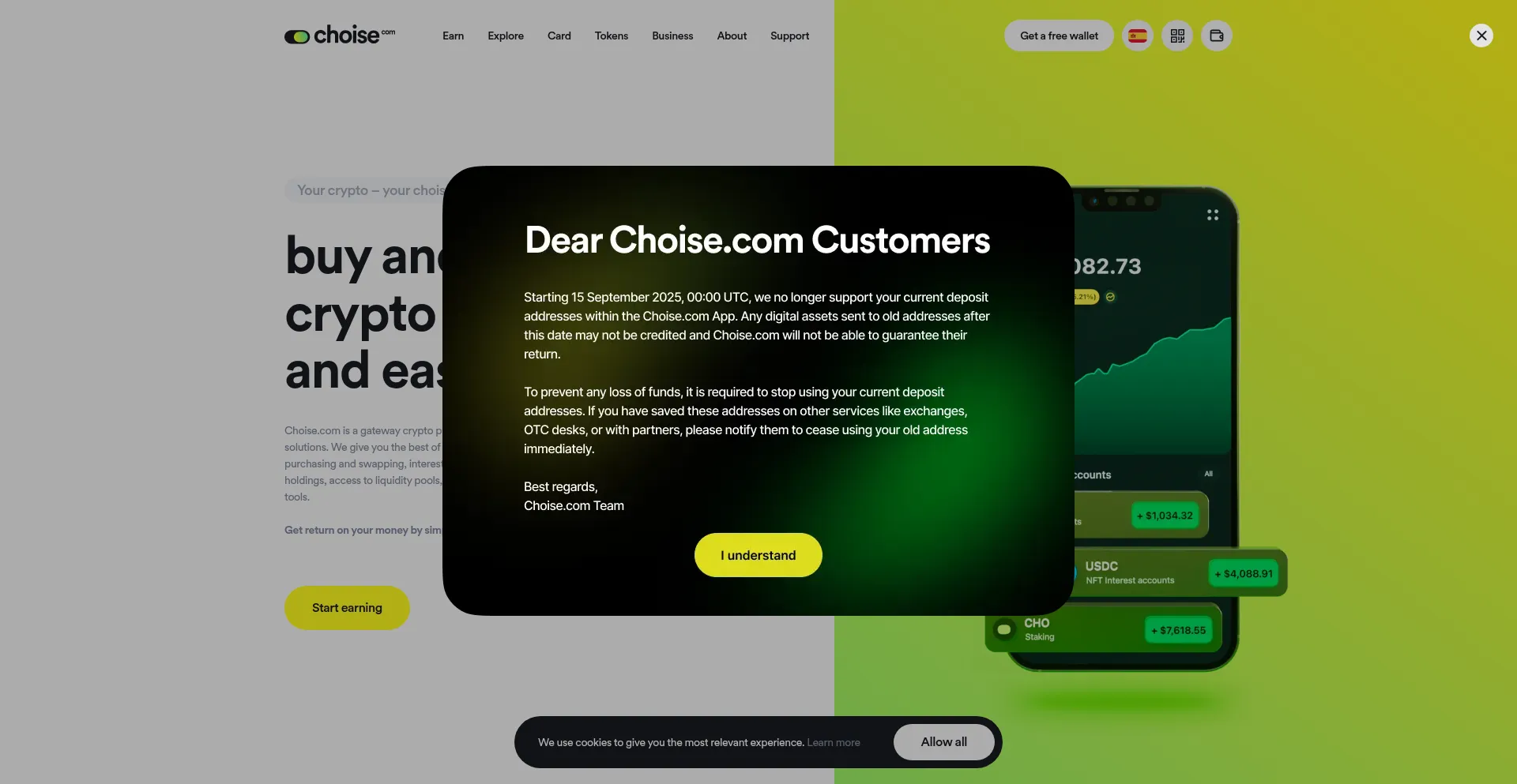 Almost one million users take advantage of Choise.com to buy crypto, earn interest on their holdings, or boost their income with attractive earn products and ultimate security.