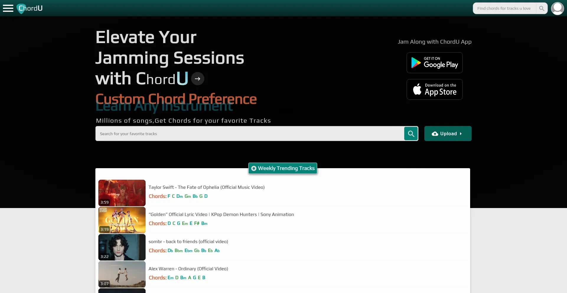 The chordu.com website offers a mobile application for Android devices, indicating expanded platform presence beyond web-based services.