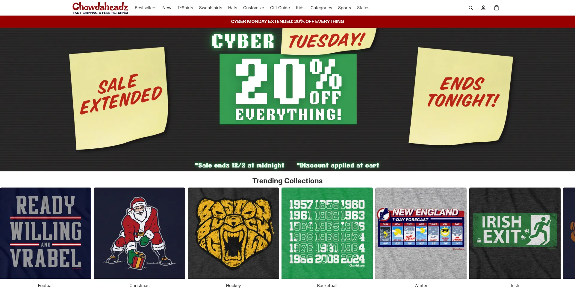 Analysis indicates that chowdaheadz.com operates as an e-commerce platform facilitating online transactions for goods or services. The website implements shopping cart functionality, payment processing systems, and product catalog features typical of commercial retail operations.