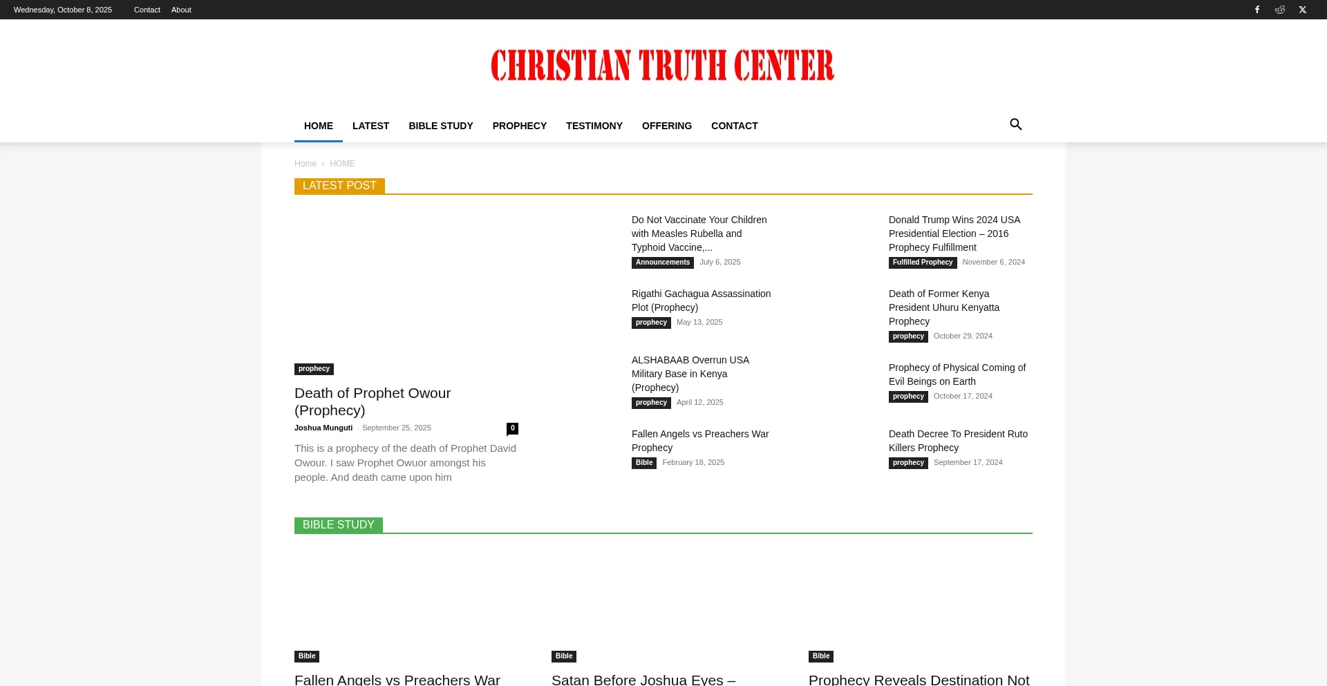 Christian Truth Center is a Bible study center with prophecy and testimony. Preaching the gospel to the whole world and revealing the truth.