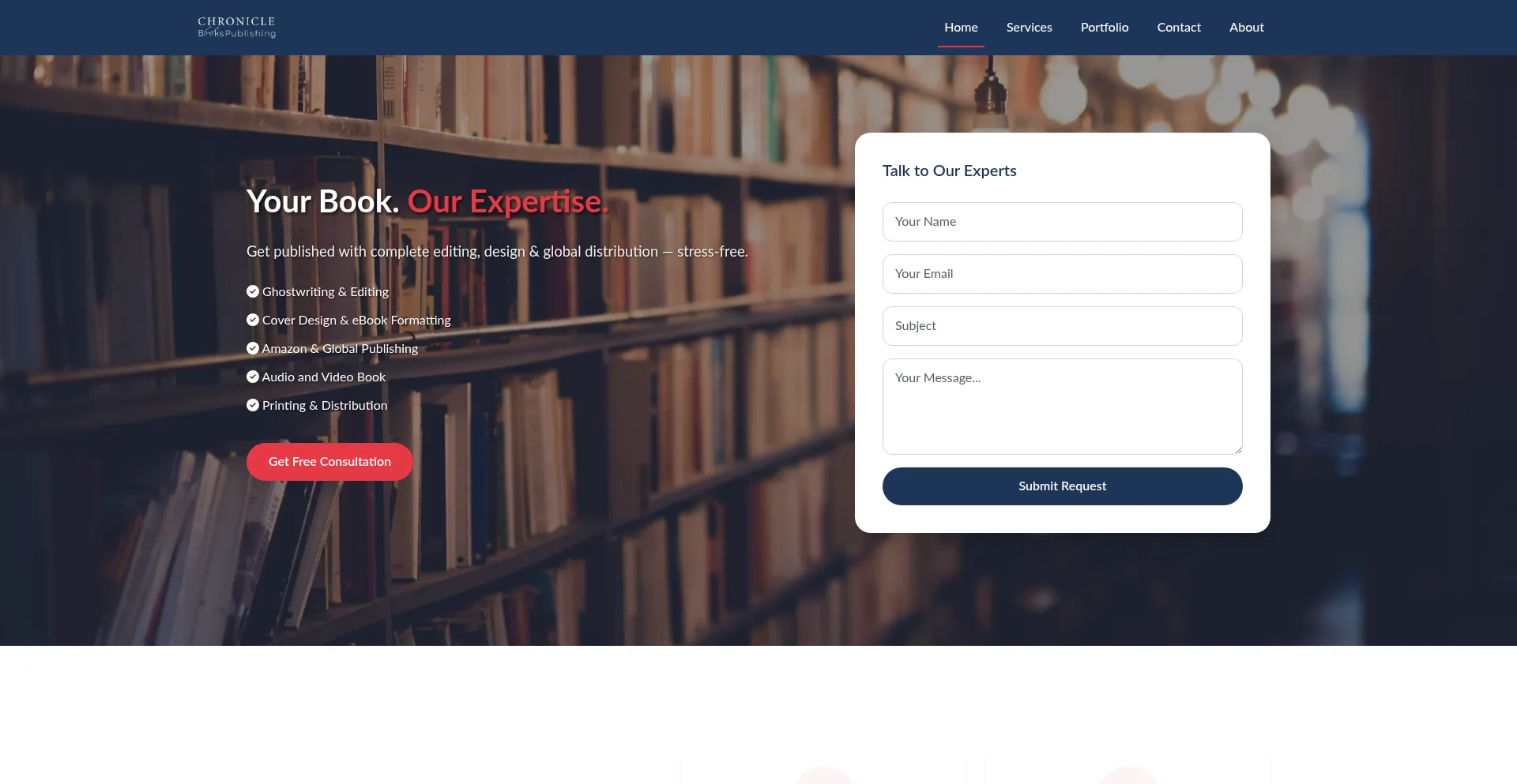 The chroniclebookspublishing.com website implements data collection forms requesting personal information including names, email addresses, phone numbers, or other sensitive details. Users should verify the legitimacy of it and review privacy policies before submitting personal data.