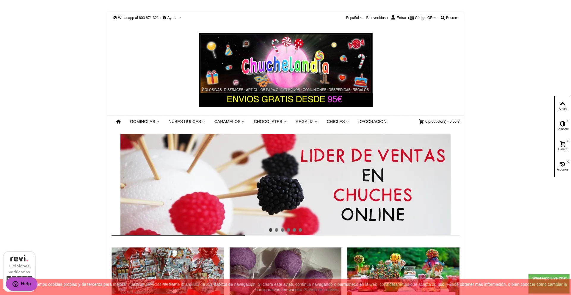 La mayor Tienda de Chuches online para comprar todas tus golosinas favoritas al mejor precio. Venta de chocolates y artículos de fiesta y decoración Disney y muchos más.