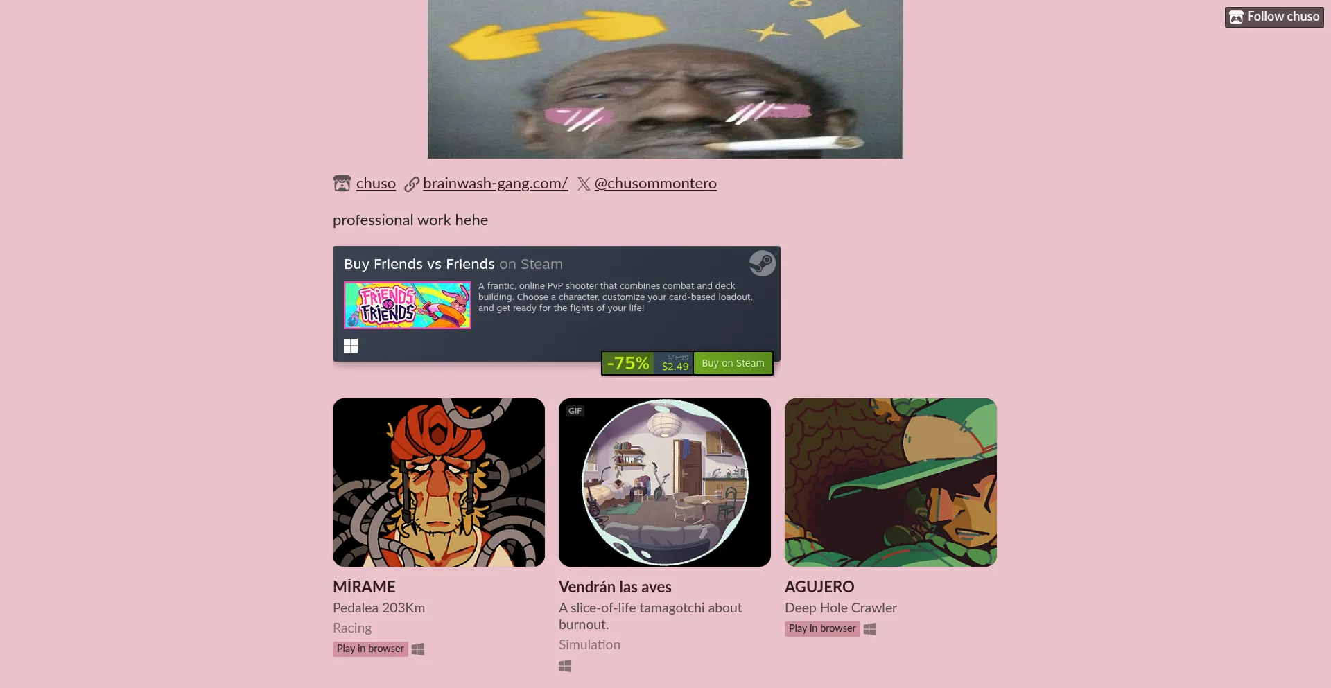chusommontero.itch.io brainwash-gang.com www.google-analytics.com nightframes.itch.io deconstructeam.itch.io eufrasi0.itch.io static.itch.io twitter.com pikas96.itch.io store.steampowered.com +4 more