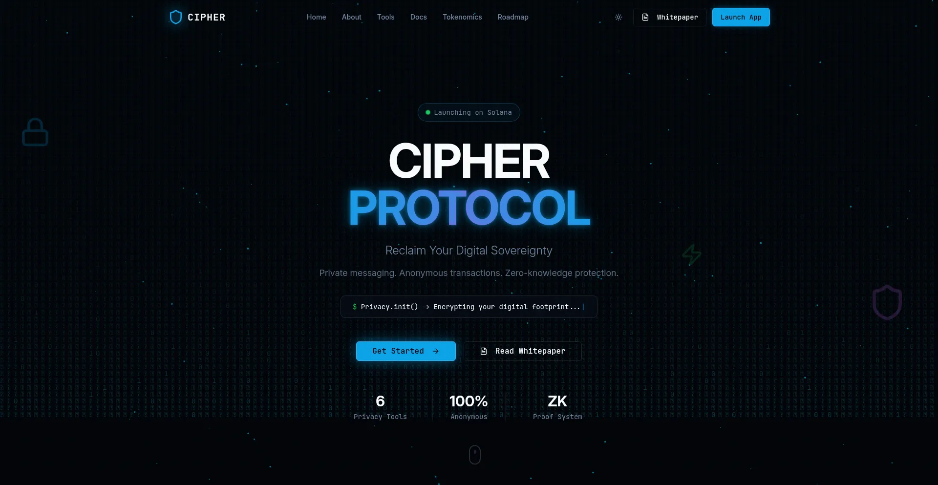 CIPHER is a next-generation privacy ecosystem delivering anonymous communications, secure transactions, and cryptographic protection through intelligent automation.