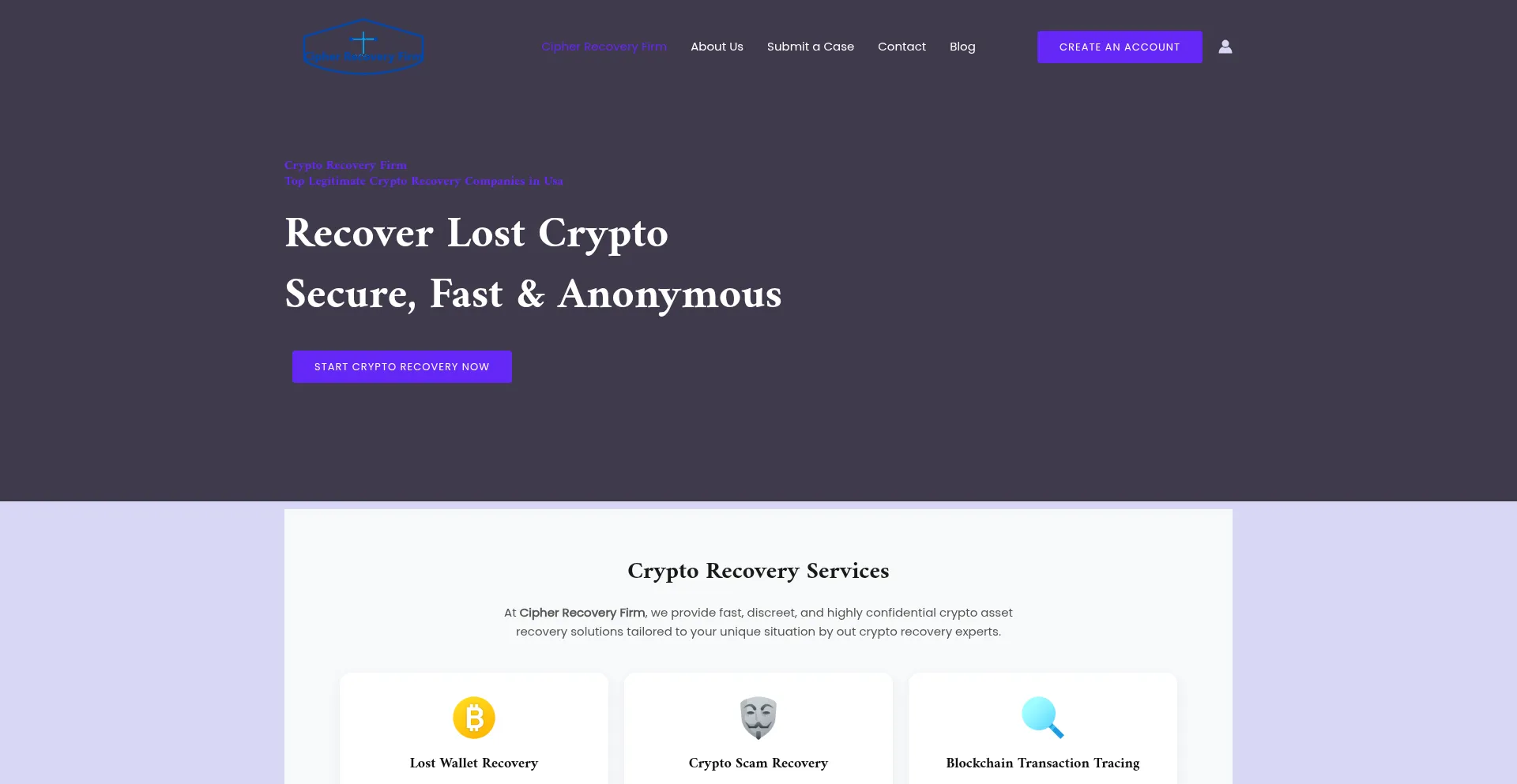 The website cipherrecoveryfirm.com advertises fund recovery services for lost or stolen assets. While some operate on contingency fee structures, others may require upfront payments, which can indicate fraudulent operations. Verify credentials and regulatory compliance before engaging such services.