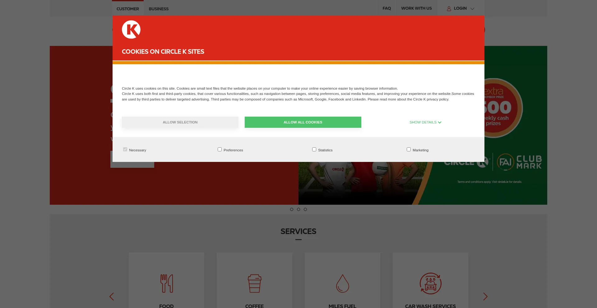 The website implements cookie consent mechanisms in compliance with privacy regulations such as GDPR or CCPA. This demonstrates that circlek.ie adheres to data protection standards and provides users with control over personal data collection practices.