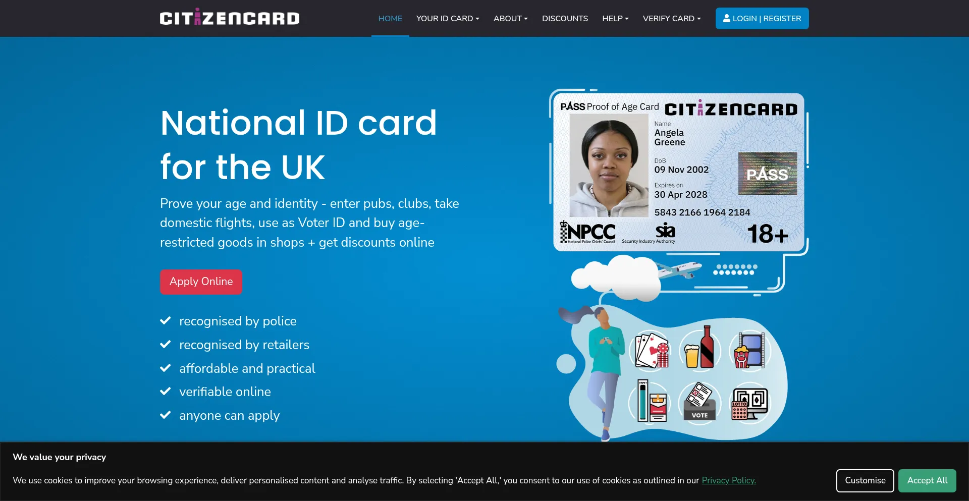 Get your national photo ID and proof of age card - apply online for a UK ID card today. Trusted identity cards since 1999 bear Home Office and police-approved PASS hologram.