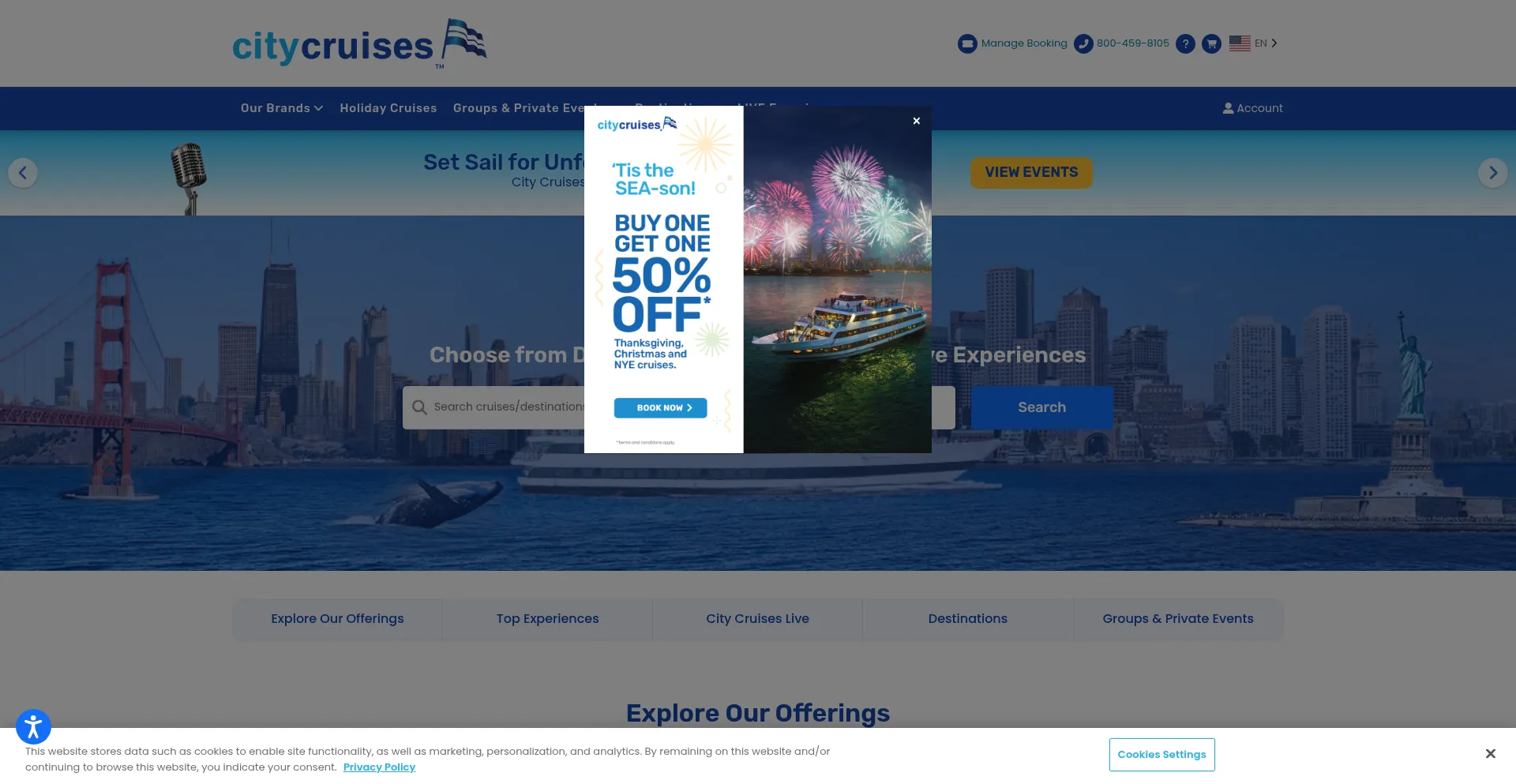 The website implements cookie consent mechanisms in compliance with privacy regulations such as GDPR or CCPA. This demonstrates that citycruises.com adheres to data protection standards and provides users with control over personal data collection practices.