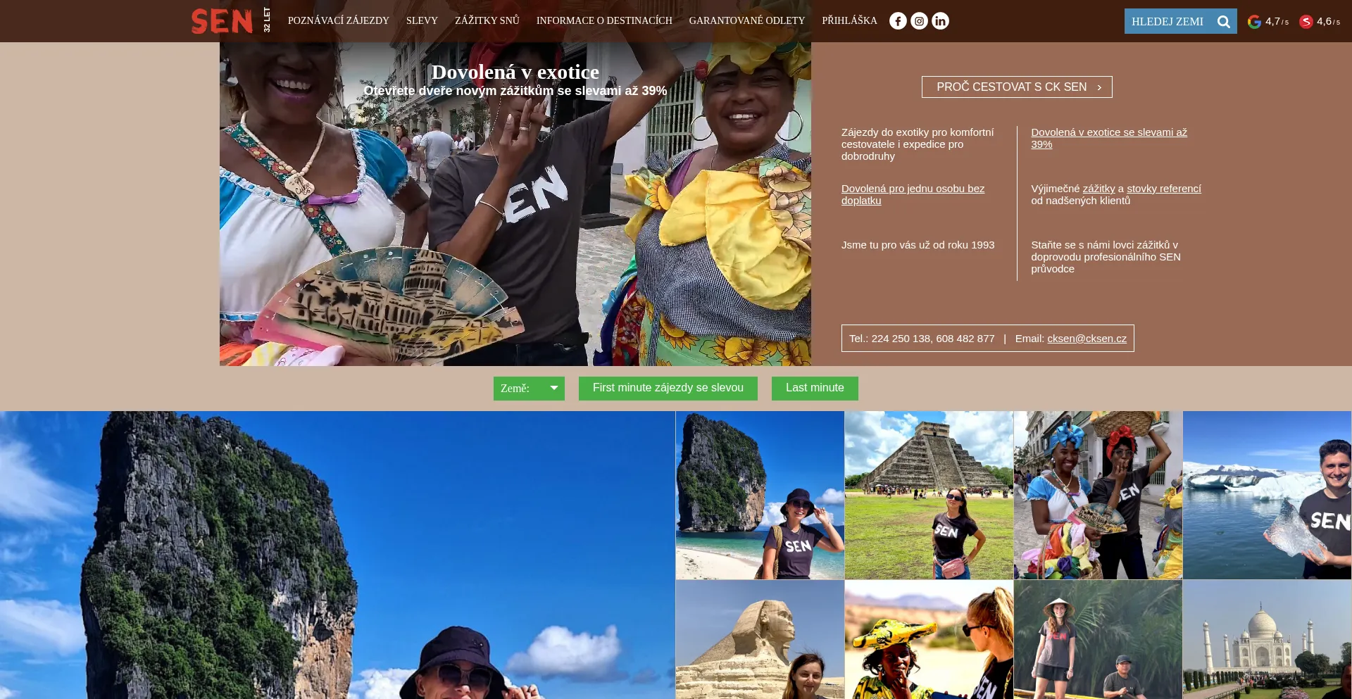 Objevte kouzlo exotických dovolených s CK SEN, vaším průvodcem již více než 30 let. Poznávací zájezdy s českými průvodci, garantovaným odletem a slevami až 39%.