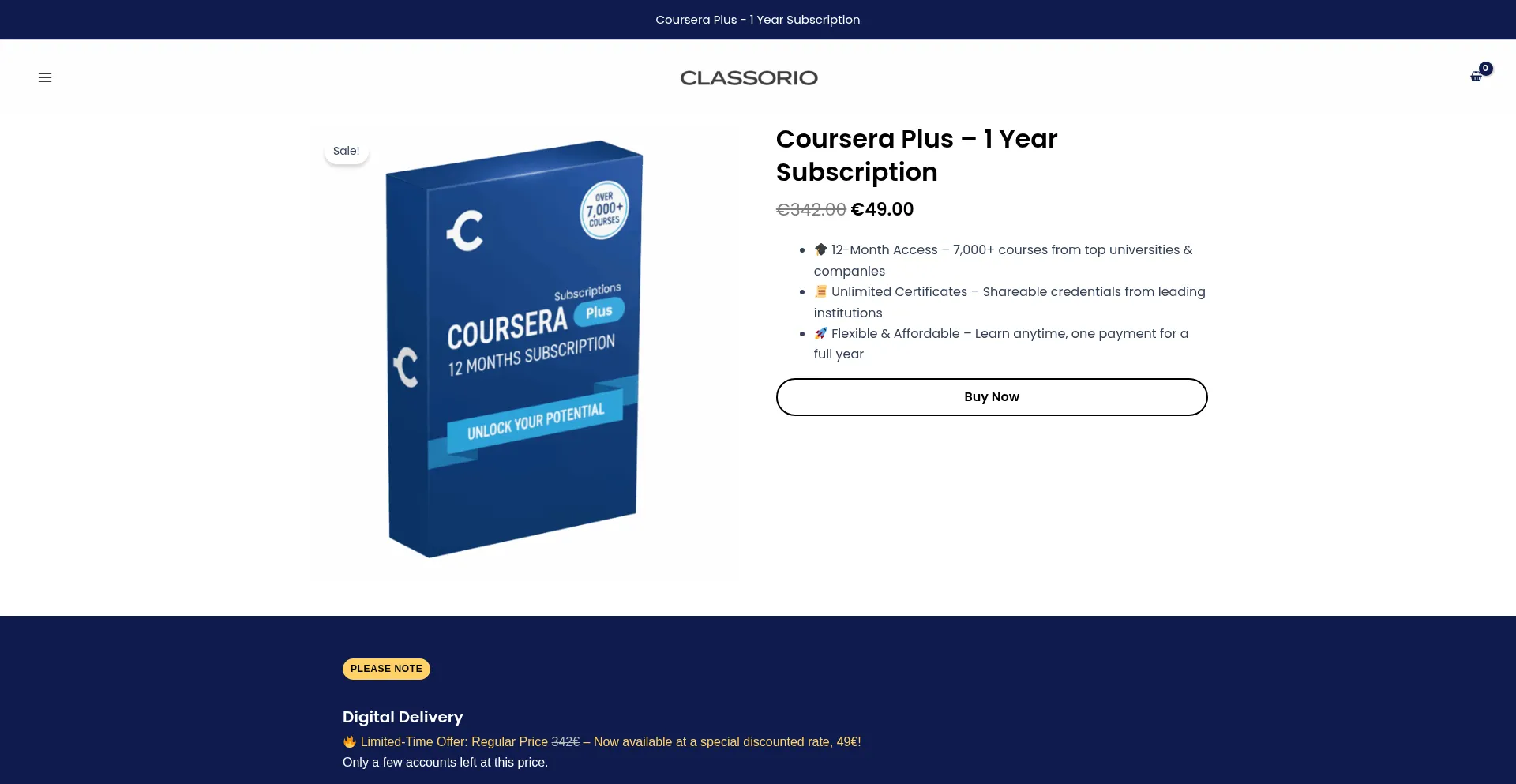 Analysis indicates that classorio.com operates as an e-commerce platform facilitating online transactions for goods or services. The website implements shopping cart functionality, payment processing systems, and product catalog features typical of commercial retail operations.